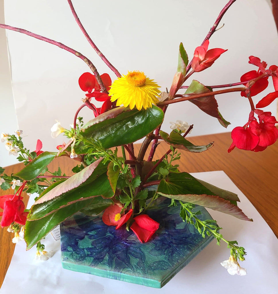Vase floral zen IKBANA, en céramique et résine, art japonais, fait main au Québec / IKBANA zen floral vase, in ceramic and resin, Japanese art, hand made in Quebec